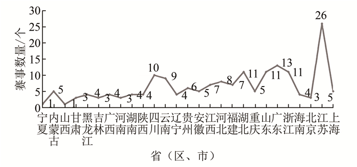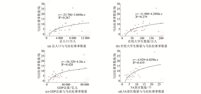 This study analyzes the spatial characteristics and influencing factors of high-level marathons in China via the Nearest Neighbor Index, the Gravity Center Model, Kernel Density Intensity Analysis. The results are shown as follows:In the scale structure, the inter-provincial distribution of the number of events shows a "pyramid" structure; in the spatial structure, the amount of marathons shows a spatial pattern of "more in the west and east but less in the center" and "more in the south but less in the north". In terms of space, the marathon competitions' gravity center is close to the economic gravity center and population gravity center of China. Concerning the agglomeration characteristics, the marathon race shows a clear agglomeration state across the country, i.e. the number of events outside the first stairway decreases from the eastern coast to the west inland with increasing altitude and mainly clusters in the southeast coastal areas, and other areas are relatively scattered. The dominant factors in the spatial distribution of marathon are economic strength, social development level, population base and level of tourism development.
